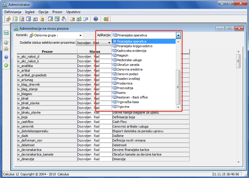 Posle instalacije nove varijante Calculusa 12 proverite ima li novih prozora kojim će te ovde morati da dodelite prava pristupa. Najlakše je da u ovom pregledu