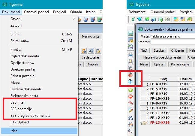 Kada želimo da pogledamo statuse i izvršene operacije različitih dokumenata i predmeta servisa na jednom mestu, to možemo da vidimo u prozoru "B2B pregled dokumenata". Iz ovog prozora takođe možemo da pokrenemo naknadne operacije, osim operacije "Pošalji".