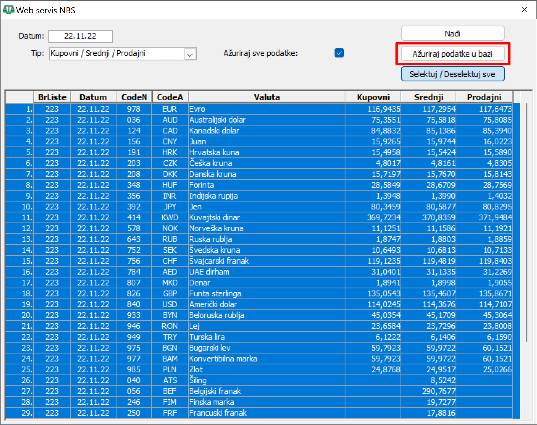 NBS Web Servis - unos i ažuriranje kursnih lista