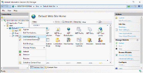 Potrebno je kreirati novi Veb servis kroz IIS7 (Internet Information Service), (vidi sliku)