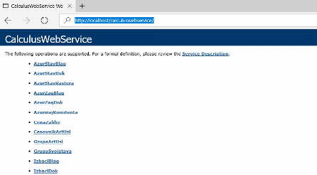 Startovanom Veb servisu možemo pistupiti sa lokalnog računara preko adrese https://localhost/CalculusWebService.