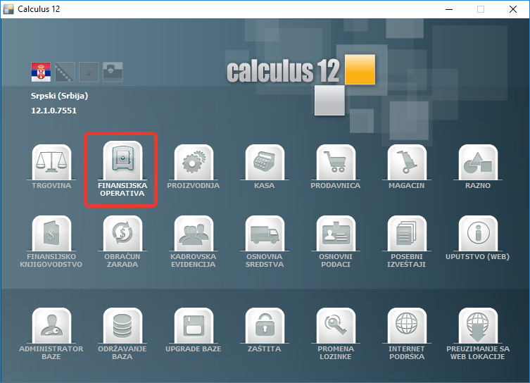 Finansijska operativa - glavni prozor