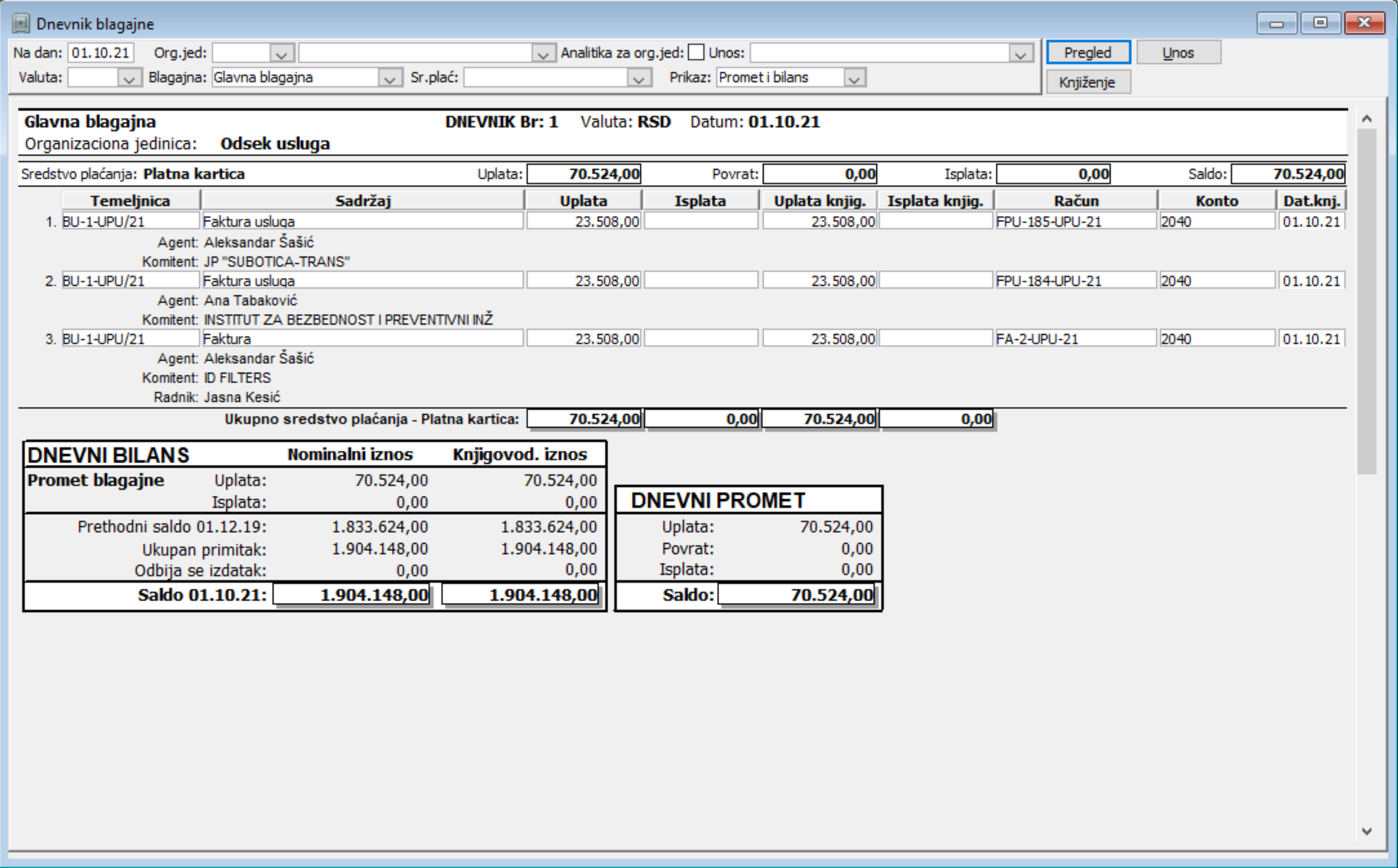 Dnevna ažurnost omogućava uspešnije planiranje i samim tim efikasnije donošenje poslovnih odluka. Postiže se izvanredna kontrola finansijskih transakcija pri čemu treba istaći da se blagajničko poslovanje može realizovati u različitim valutama sa evidencijom po sredstvima plaćanja. Kroz knjige ulaznih i izlaznih faktura i profaktura olakšan je uvid u sve dokumente bez potrebe njihovog evidentiranja u papirnom obliku.