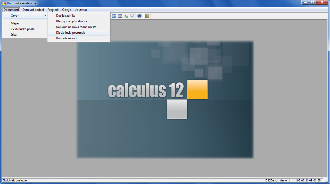 U glavnom meniju programa "Kadrovska evidencija" odaberite stavku "Dokumenti - Otvori - Disciplinski postupak"