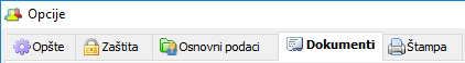 Listić "Dokumenti" - Podešavanje opcija za rad programa sa padajućimm listama i podacima (vidi sliku)