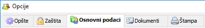 Listić "Osnovni podaci" - Podešavanje opcija za rad programa sa padajućimm listama i podacima (vidi sliku)