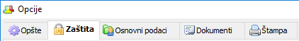 Listić "Zaštita" - Podešavanje opcija za rad programa sa padajućimm listama i podacima (vidi sliku)
