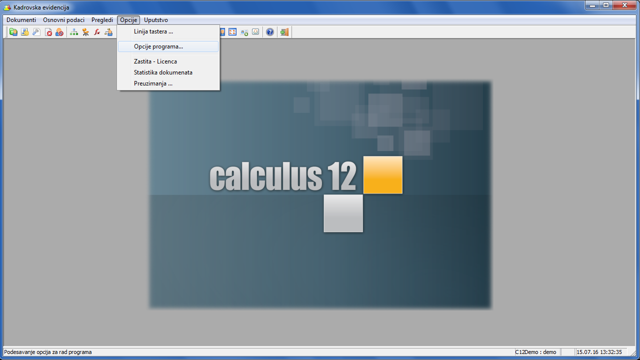 . U prozoru "Opcije programa" podešavaju se različite opcija programa koje utiču na ponašanje samog programa ili celog paketa Calculus 12.