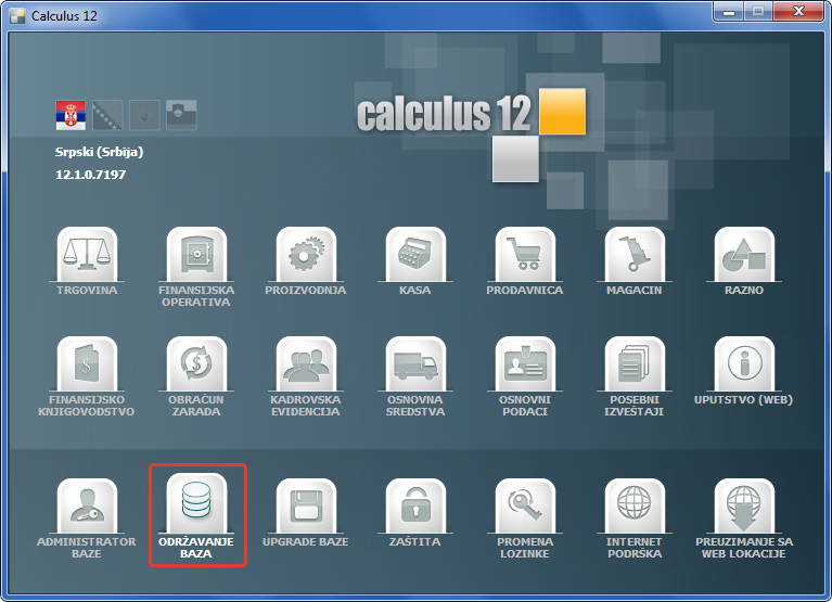 Program Upgrade baze morate više puta startovati za više baza podataka. Kada je broj instaliranih baza velik, npr. kod knjigovodstvenih agencija, ovo može biti zahtevan i zamoran posao. Rešenje postoji u programu "Održavanje baza", u kojem možete selektovati za koje sve baze želite da uradite upgrade i da jednim klikom miša odradite kompletan posao. Da otvorite program za održavanje baza podataka u okviru aplikacionog menija kliknite na dugme "Održavanje baza".