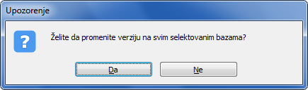 Izbor baza za upgrade..Kliknite na dugme "Pusti upgrade" kako biste istovremeno pokrenuli nadogradnju (upgrade) za više baza podataka. Na upozorenje odgovorite sa "Da" (vidi sliku)