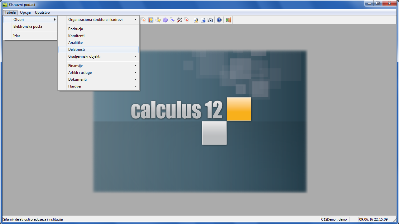 Šifarnik delatnosti koristi se u raznim aplikacijama Calculus 12 i evidencijama kao što su komitenti, organizacione jedinice, carinske evidencije