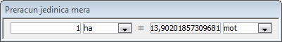 Detaljnije objašnjenje za postupak sa nestandardnim JM možete da nađete u uputstvu za uvoz podataka u bazu - eksterni dokumenti, sekcija Stavke za kalkulaciju - SEF UF"Podprozor "Preračun jedinica mera" - služi za preračun jedinice mere u drugu jedinicu mere pod uslovom da je prethodno definisan njihov odnos u podprozoru "Odnos prema jed. mere". Unesite vrednost i jedinice mera i kliknite na dugme "Preračunaj" ( vidi sliku )