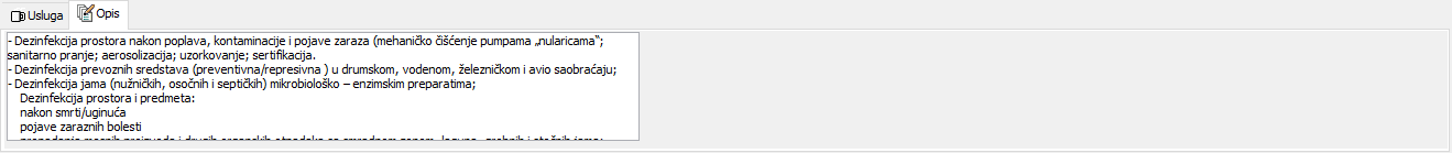 Listić "Opis" - sadrži memo polje koje omogućava unos šireg opisa usluge (vidi sliku)