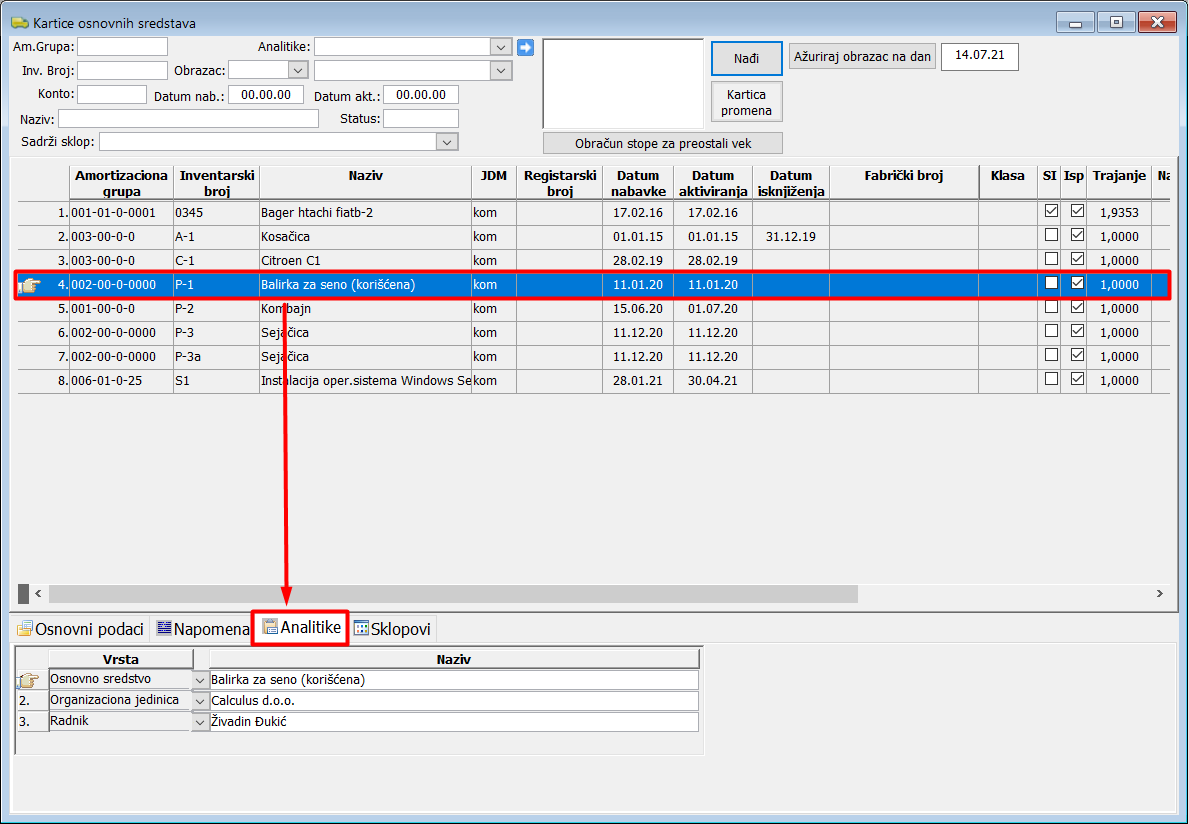 Vodite računa da ukoliko stavite obaveznu analitku na jedan konto ispravke, onda sva sredstva koja pripradaju toj amortizacionoj grupi moraju imati unetu tu vrstu analitike inače će se u nalogu glavne knjige pojaviti stavka bez popunjene analitike, pa ćete morati naknadno da je popunite.