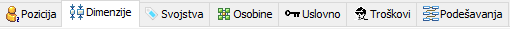 Ako je postavljena opcija "Otvara se prozor za dodatne osobine ako postoje" podrazumeva se da proizvod koji ulazi u sastav stavke prodajnog dokumenta ima dodeljene određene dimenzije ili svojstva. U tom slučaju, Otvara se dvoklikom na polje za unos količine, otvoriće se prozor za unos svojstva ili osobine.