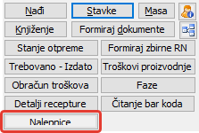 Dugme "Detalji recepture" - klikom na ovo dugme otvara se prozor "Detalji stavke / recepture" za prikaz stavki recepture u skladu sa postavljenim filterom.