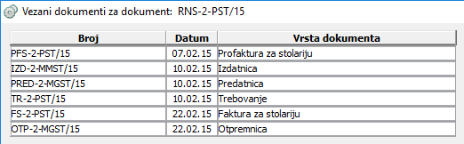 dobija se informacija o tome da li za dati dokument postoje vezani dokumenti odnosno oni dokumenti koji prethode ili slede datom dokumentu