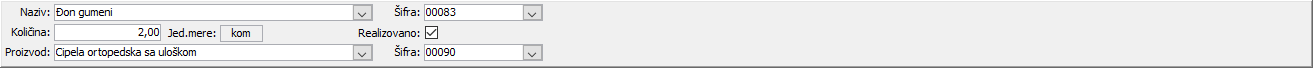Polje "Šifra:" - sadrži šifu proizvoda u čiji sastav ulazi selektovana stavka.
