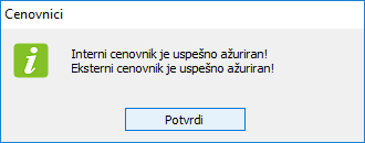 vrši se promena cena artikla cenama iz izabranog cenovnika. - Dugme