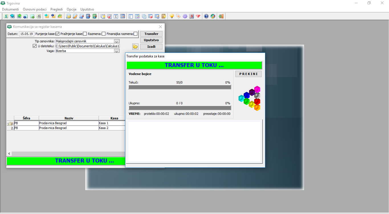 Punjenje kase - transfer podataka u kasu