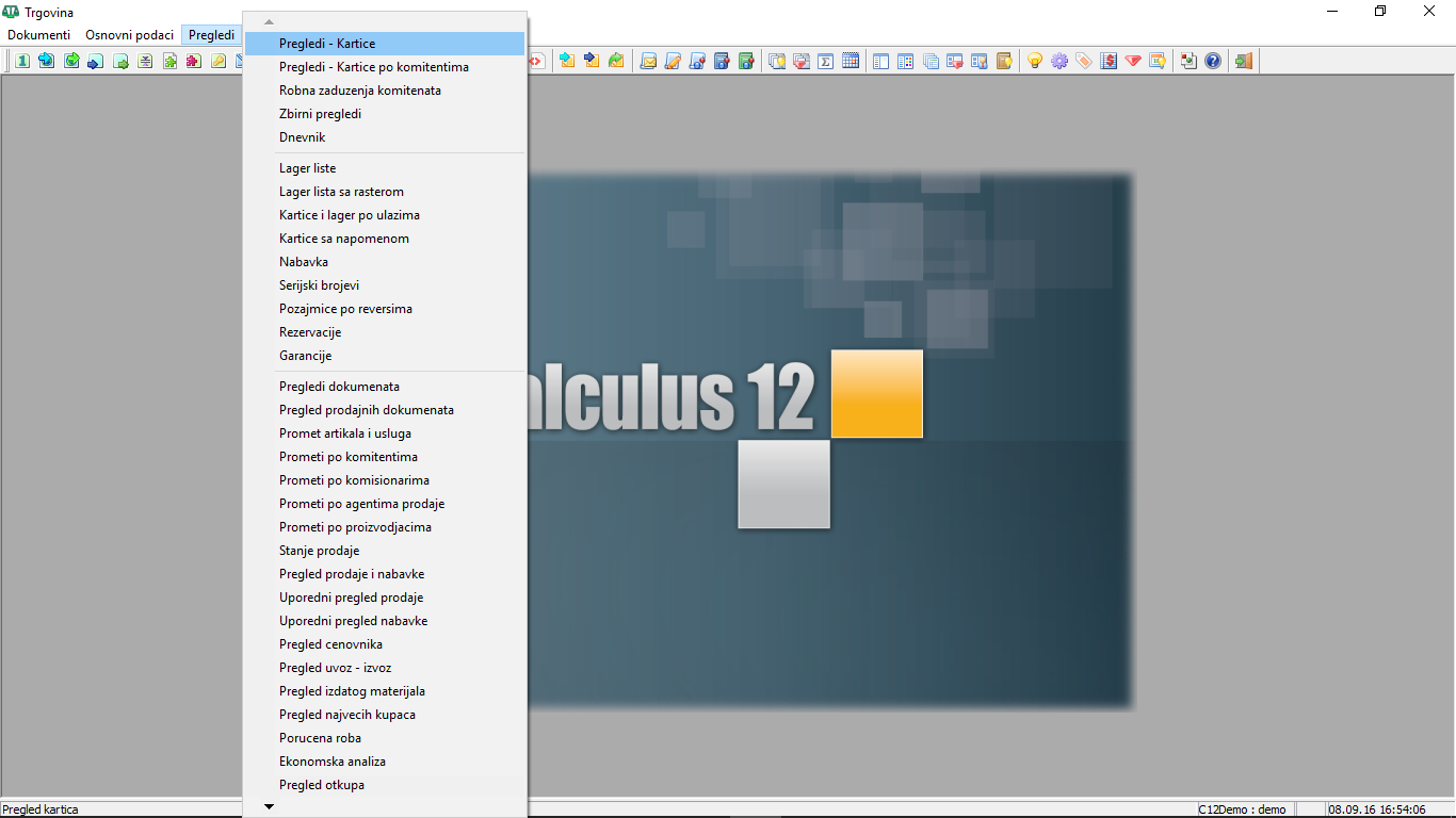Da otvorite prozor "Pregledi - "Pregled - kartice"" u glavnom meniju programa "Trgovina" odaberite stavku "Pregledi - "Pregled - kartice"" ( vidi sliku )