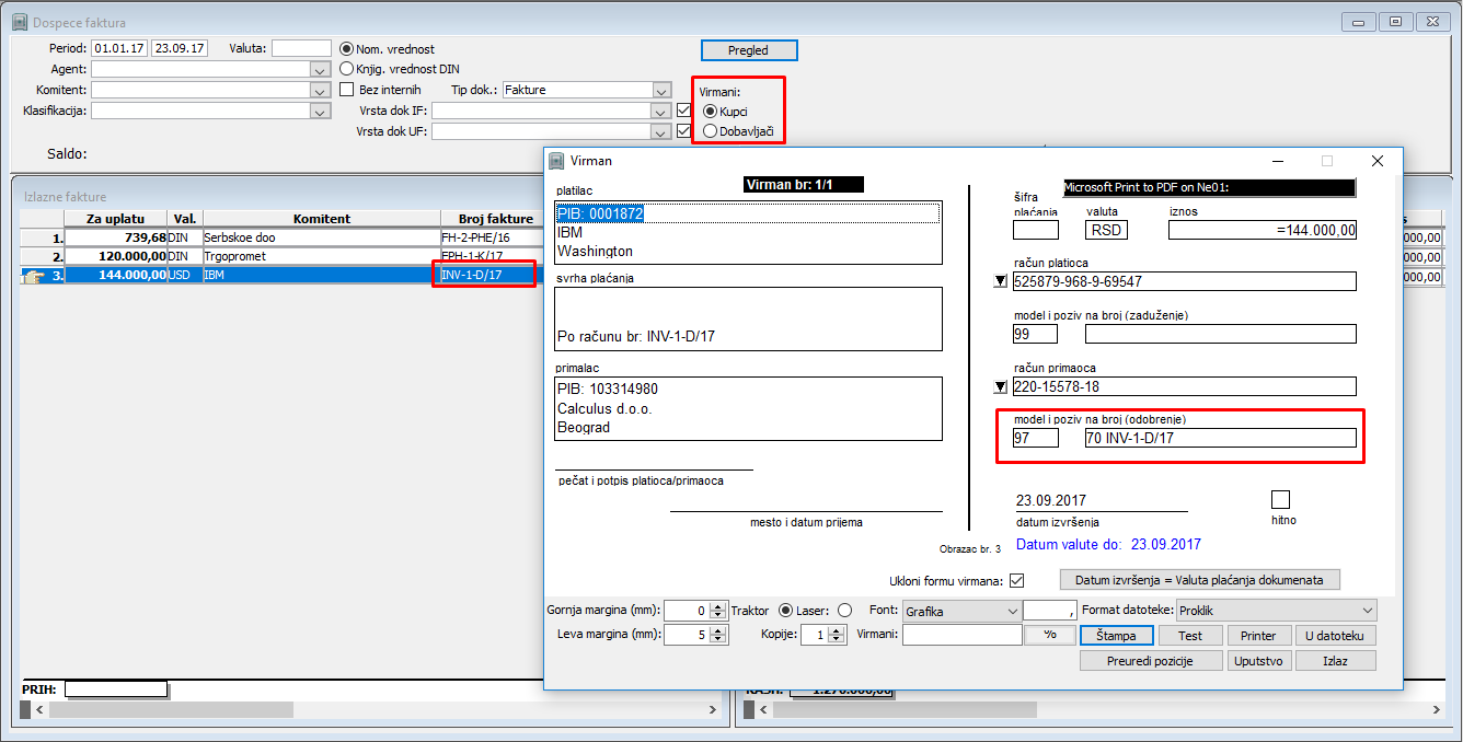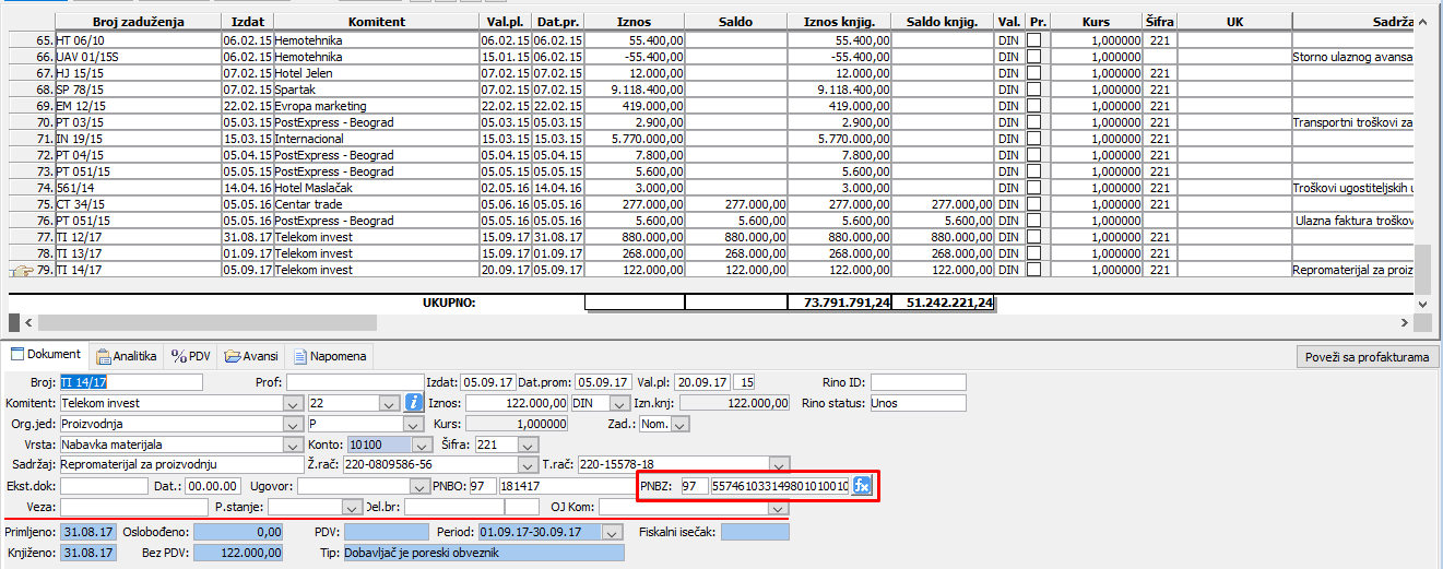 Takođe na samom dokumentu i na nalogu za prenos (virman), u ovom slučaju za ulaznu fakturu, korisnik može ručno editovati podatak o PNB.