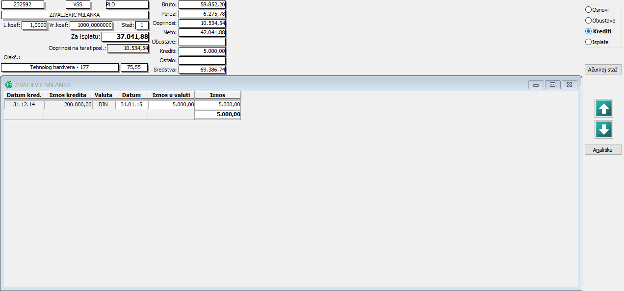 Evidencija kredita zaposlenih
