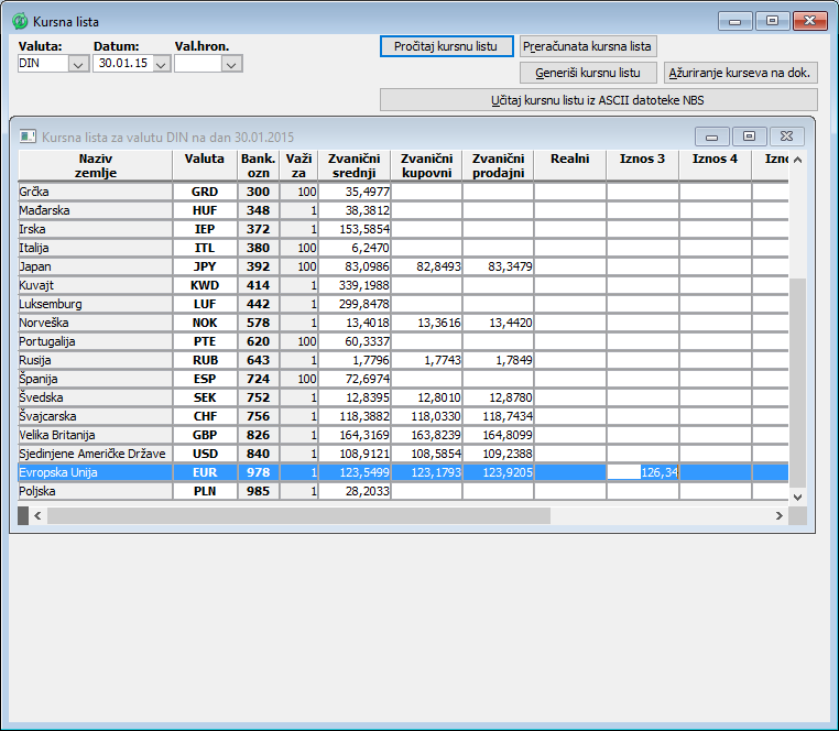 Kako se najčešće kursevi valuta razlikuju od banke do banke, potrebno je da posebno unesete devizni kurs za tu banku i tu vrstu kursa vežete za kredit ( vidi sliku )